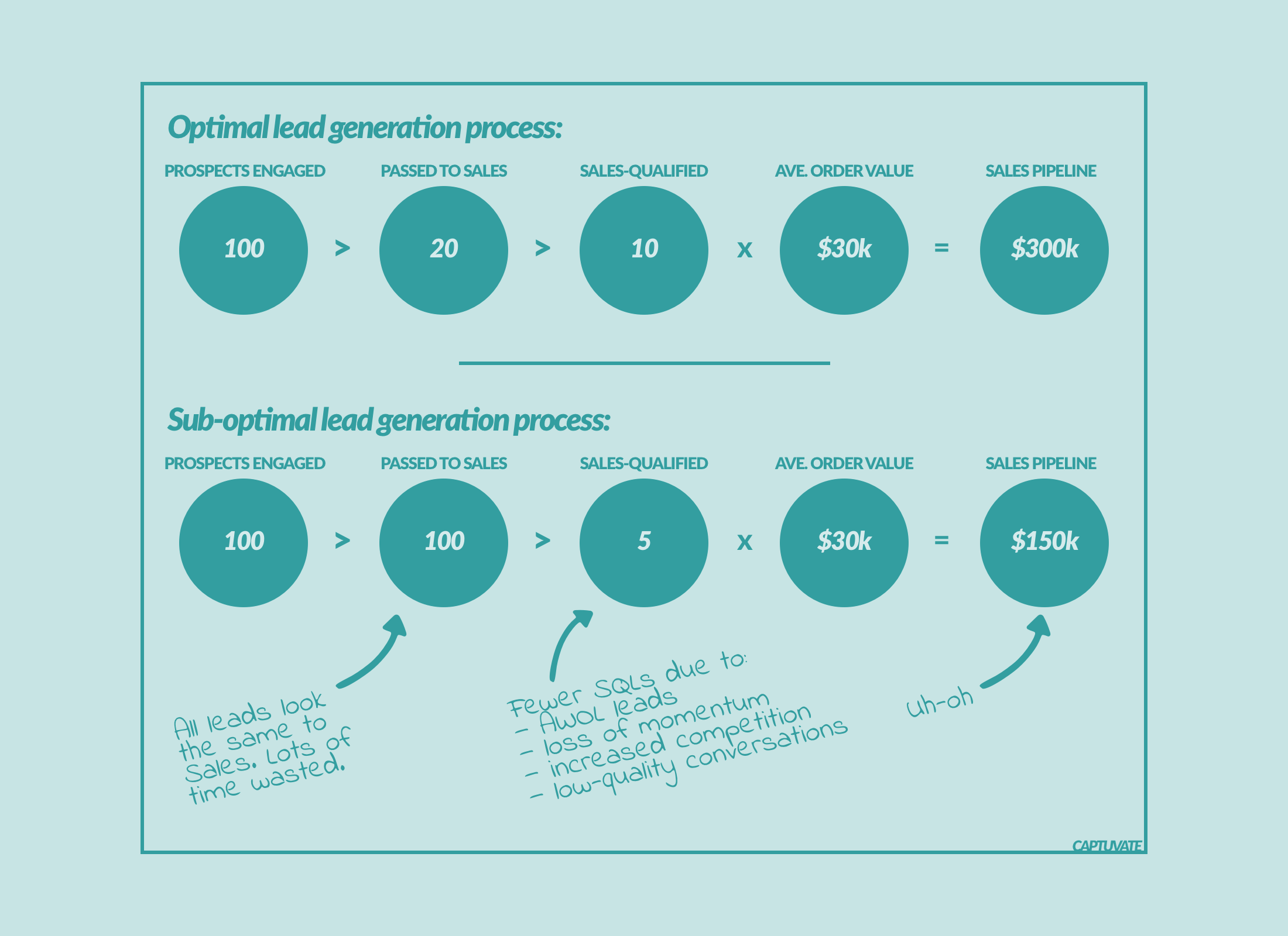 And when those few discussions do occur, they’re not as valuable — there’s a lack of context and a loss of first-mover advantage. Suddenly you’re looking at 4 or 5 SQLs instead of 10.
