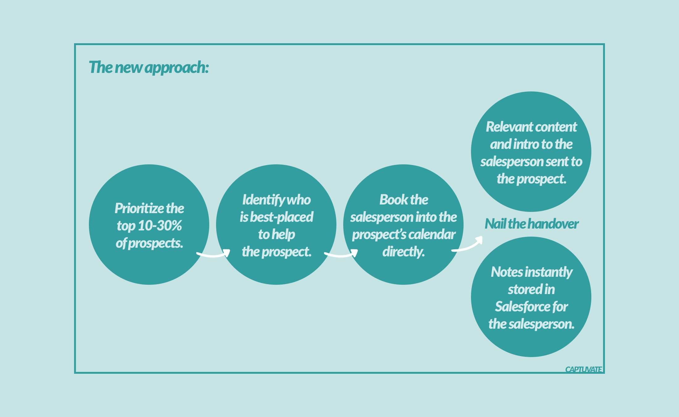 (Hint: it involves fast-tracking your most engaged prospects directly to a hand-picked salesperson, one that’s best-placed to carry the baton from there-on...)