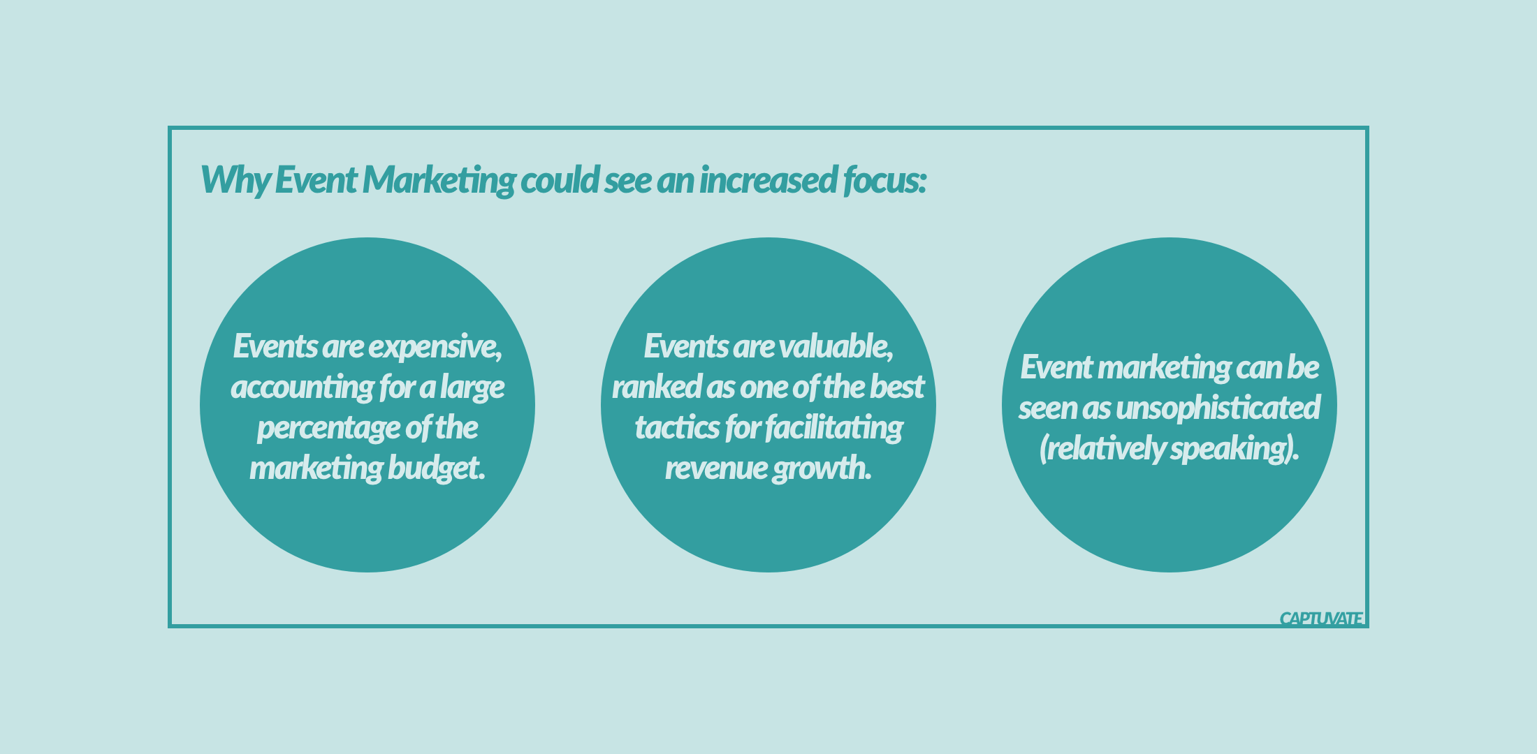 In short, because if it hasn’t happened already, the productivity of a company’s event marketing team is about to loom much larger on the radar of CMOs and senior marketing leaders.
